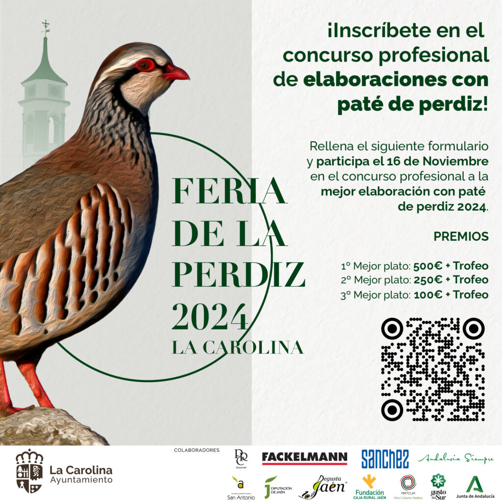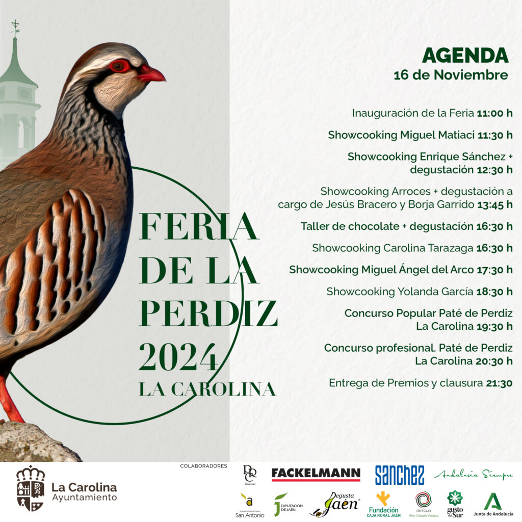 La I FERIA DE LA PERDIZ de La Carolina es una realidad. Desde la concejalía de hostelería y turismo, junto con la concejalía de agricultura, lanzamos la primera edición de una feria en la que ponemos el valor la tradición, historía y promoción del producto agroalimentario estrella de nuestra ciudad, el paté de perdiz. Esta edición se celebrará el próximo 16 de Noviembre en la Caseta Municipal desde las 11:00 a las 22:00h.