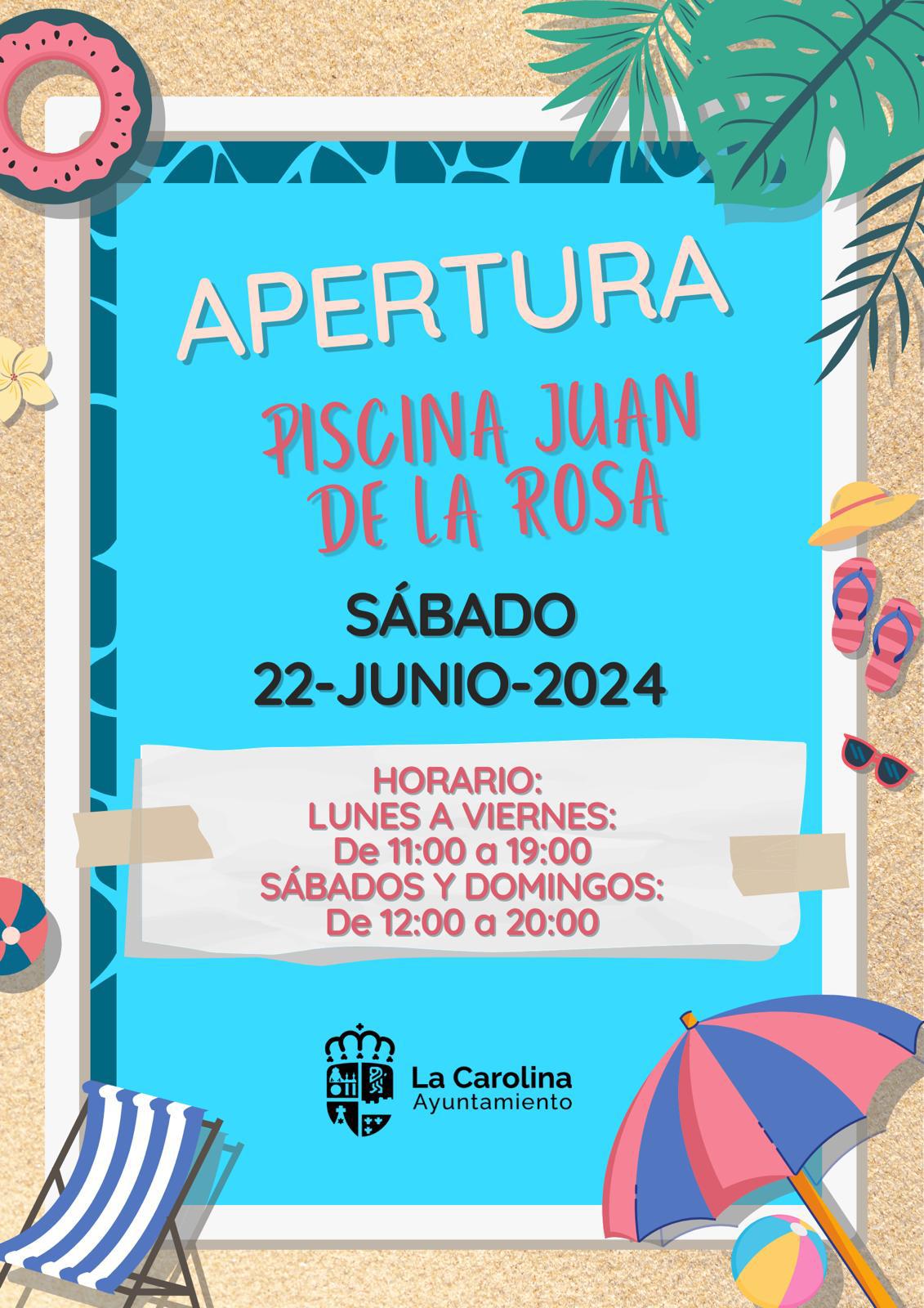 🏖 Ya tenemos fecha para la apertura de la piscina municipal. El próximo sábado, 22 de junio, la piscina municipal Juan de la Rosa abrirá sus puertas al público para la temporada de verano 2024.